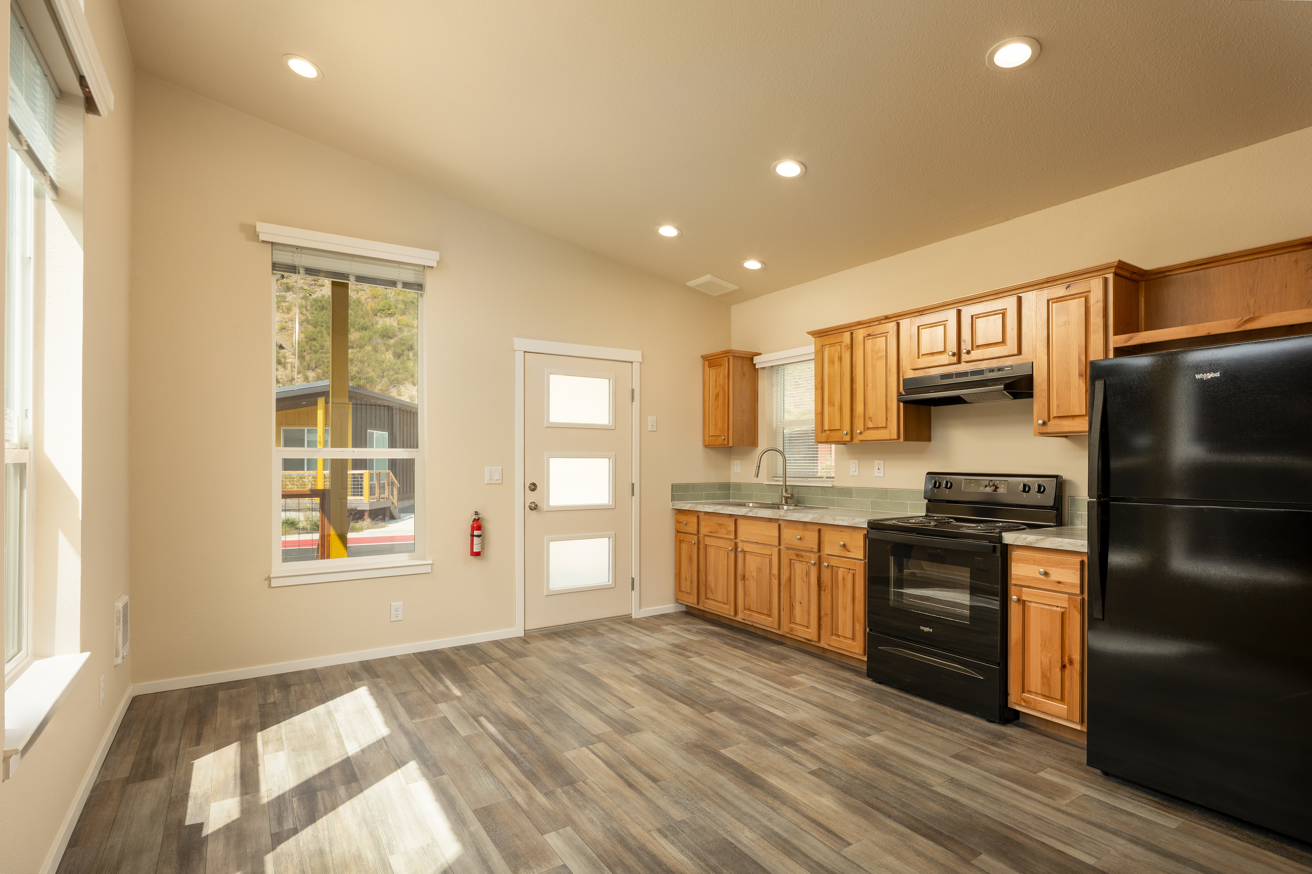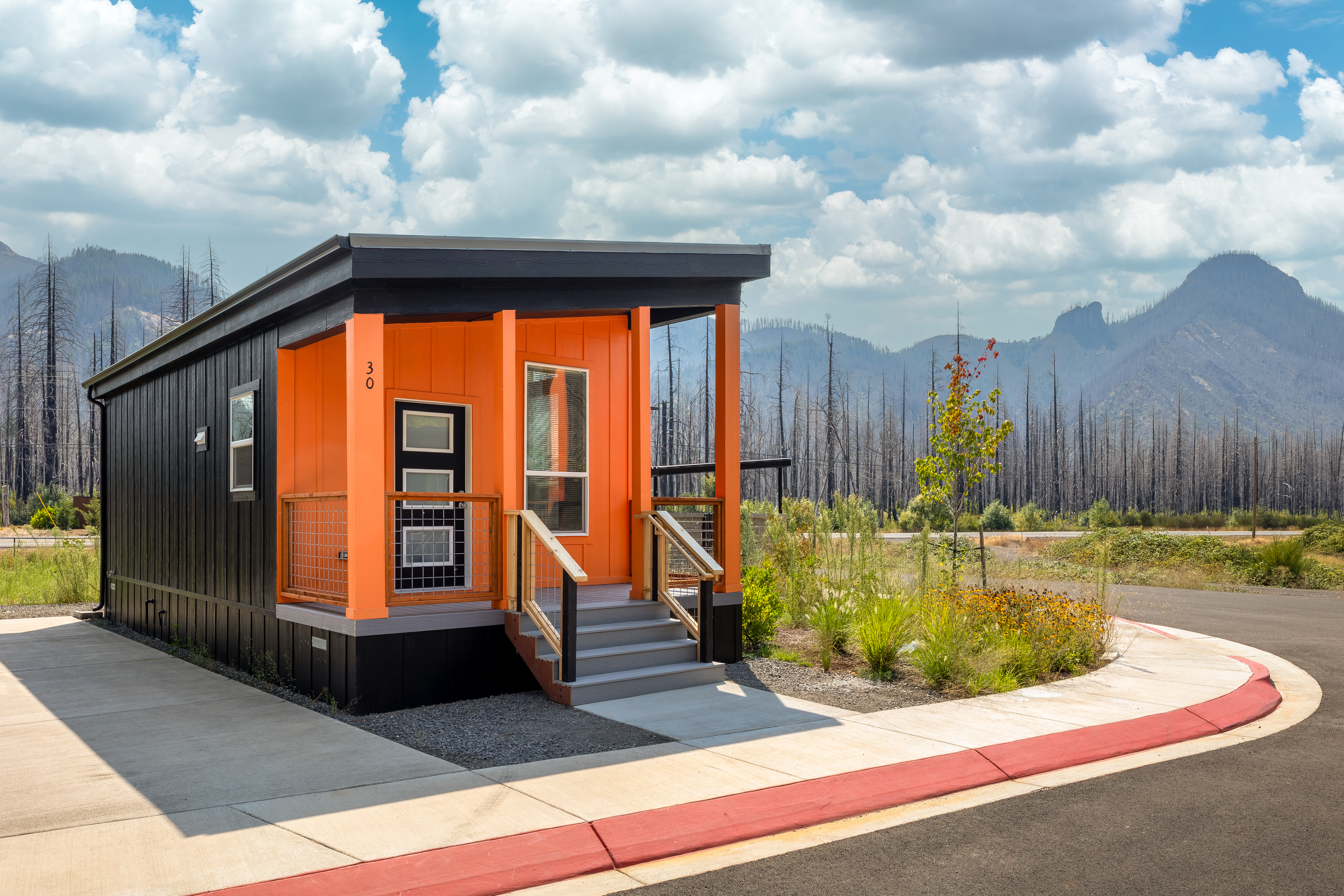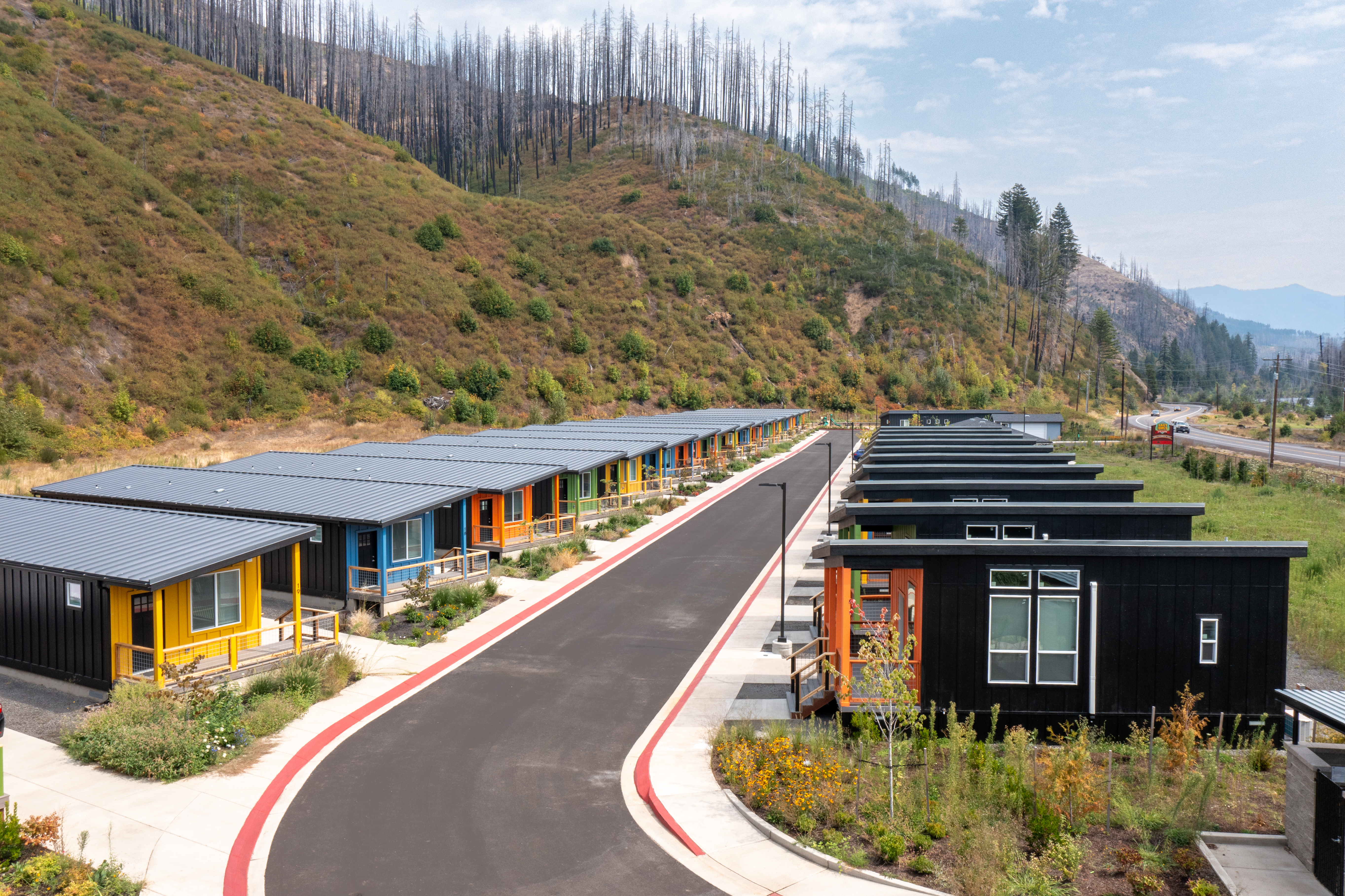 Lazy Days is located on the north side of the McKenzie Hwy at 52511 McKenzie River Hwy. The park was completely destroyed in the Holiday Farm fire in the fall of 2020 and Homes for Good is completely rebuilding the park to provide 20 spaces for modular and an additional 10 spaces for park model RVs as well a community building, playground, and other amenities. Modular homes include DHP heating/air conditioning unit and offer energy efficient appliances. Modular homes also feature in-unit laundry, and the property has laundry facilities in the community room for Park Model RVs. Each resident’s driveway includes off-street parking spaces for up to 3 vehicles.
